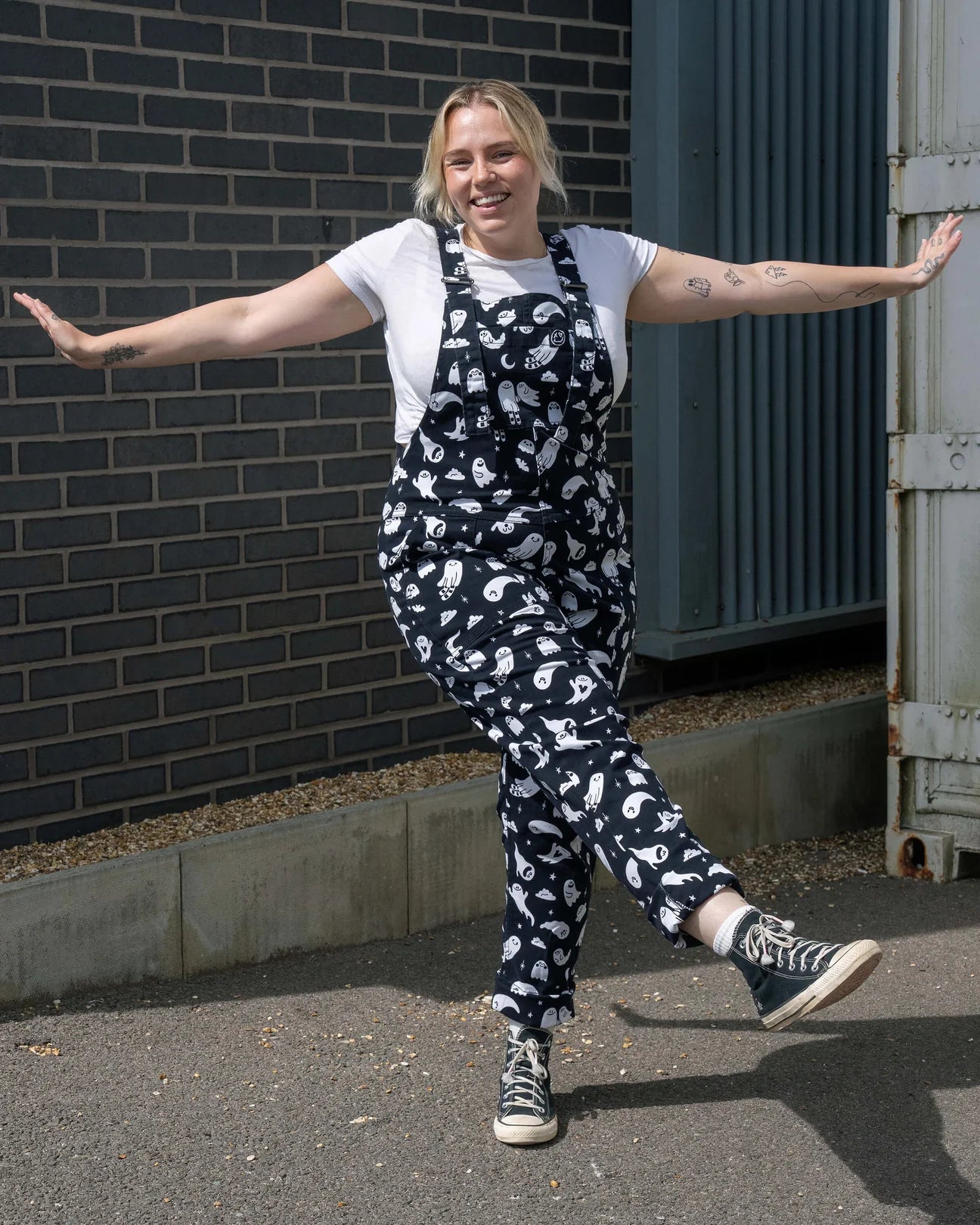 Say hello to the Ghosties Stretch Dungarees, a relaxed-fit unisex dream made from comfy stretch twill and ethically produced in India! Covered in a playful parade of black and white ghosts, this bold design is perfect for those who like their fashion with a dash of eerie energy. Whether you’re into alternative fashion, dopamine dressing, or just want to ghost your boring wardrobe, this one’s for you.