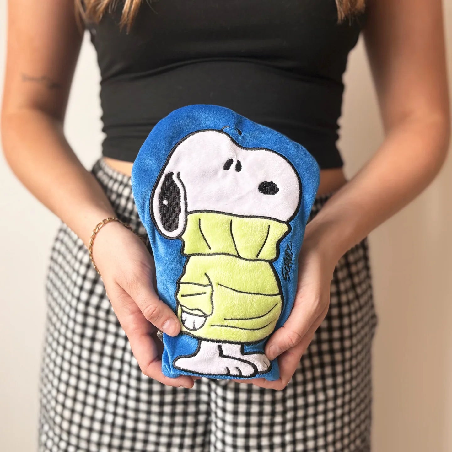 Features: Keep cosy this winter with our mini Peanuts hot water bottle! Soft velour blue fabric with applique Snoopy rocking a turtle neck jumper - what's not to love!!! The perfect gift for lover of Snoopy!
